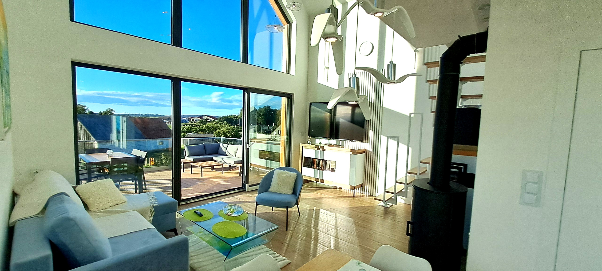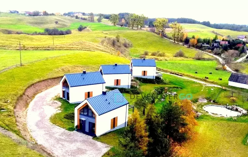 Na pięknym wzgórzu z malowniczym dojazdem i parkingami częściowo wciętymi we wzgórze, z zawieszonymi na słupach tarasami znajdują się cztery domy z zapierającym dech w piersiach widokiem na jezioro Orzysz i wyjątkową okolicę Mazur Garbatych.